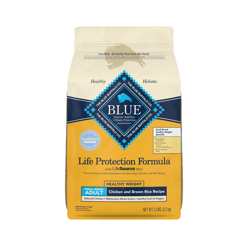 BLUE Life Protection Formula Small Breed Healthy Weight Dry Dog Food is formulated with a precise blend of proteins and carbohydrates to meet a smaller dogs higher energy needs and doesnt contain the extra calories to help your dog achieve and maintain a healthy weight. It contains the ingredients youll love feeding as much as theyll love eating.