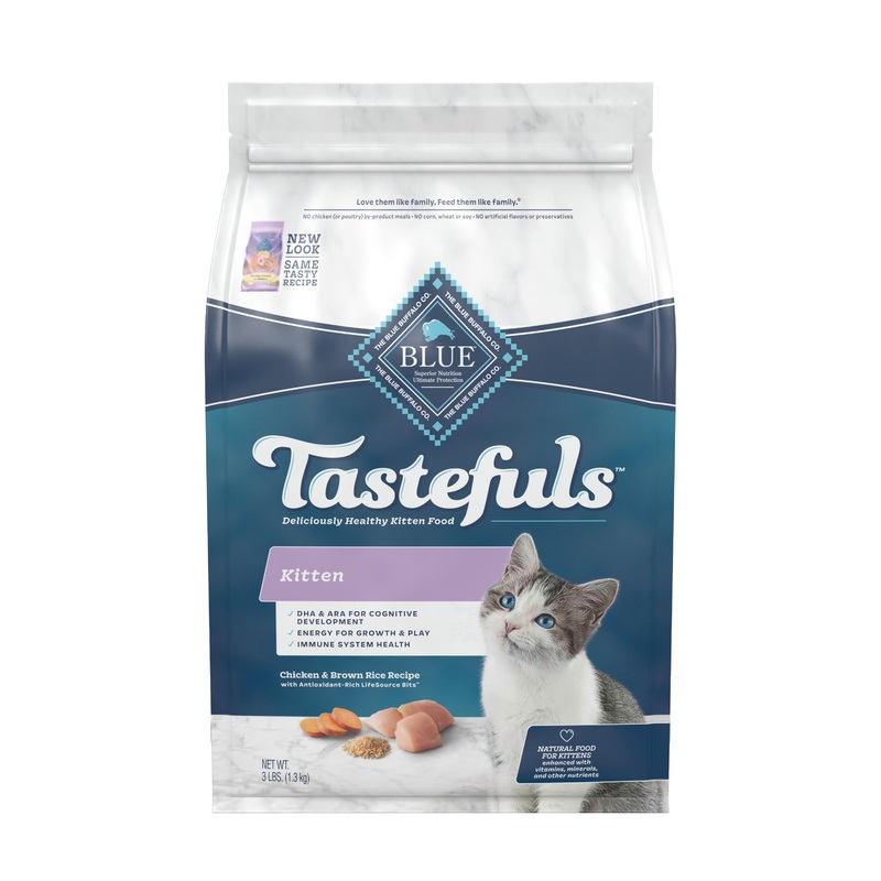 Deliciously healthy Blue Buffalo Tastefuls dry kitten food starts with real meat and is specifically formulated for your growing kittens needs. Each recipe contains DHA and ARA to support brain and eye development, plus Taurine an essential amino acid to s