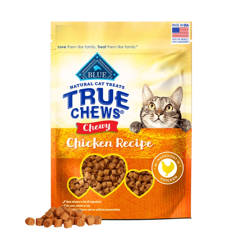 Give your cat a meaty reward worth remembering with BLUE True Chews Chewy Cat Treats. Made with real meat first, these delectable, bite-sized morsels feature high-quality, healthy ingredients you can feel great about feeding your cat. They are a natural cat treat guaranteed to get purrs of approval from the pickiest cat companions. BLUE True Chews are brought to you by Blue Buffalo, the leader in natural pet food. Love them like family. Treat them like family.