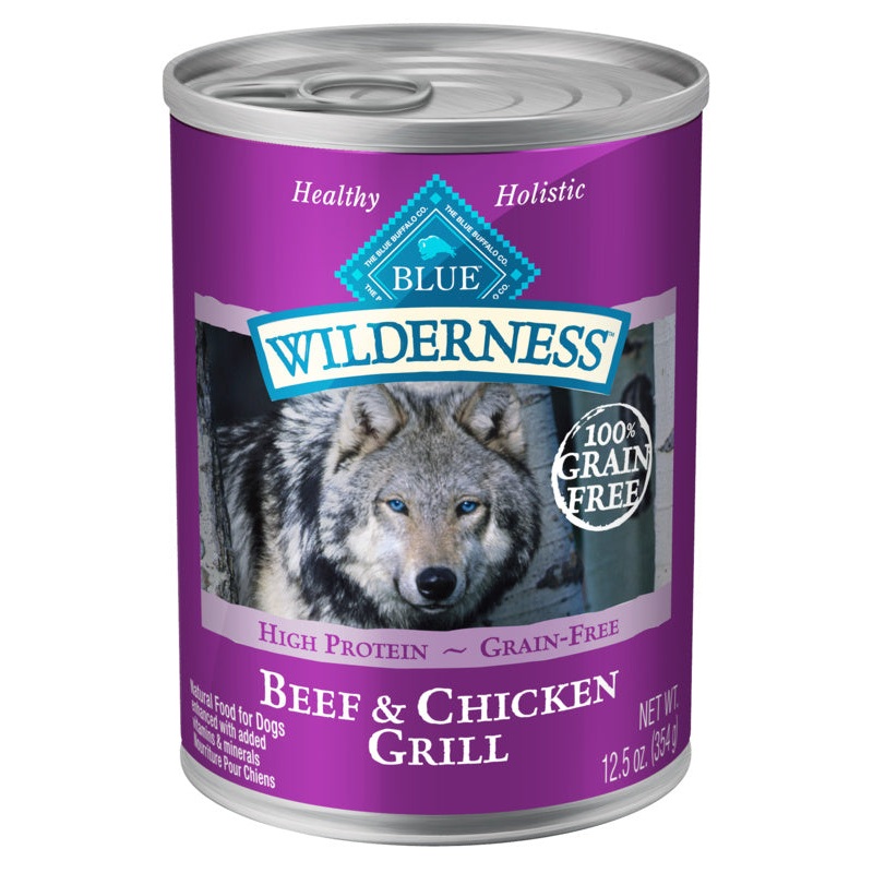 Packed with more of the meat dogs love and free of the grains that contain gluten, BLUE Wilderness wet dog food is made to feed your dogs wild side. With real beef and chicken, plus fruits and vegetables, this grain free recipe features the finest natural ingredients enhanced with vitamins and minerals.