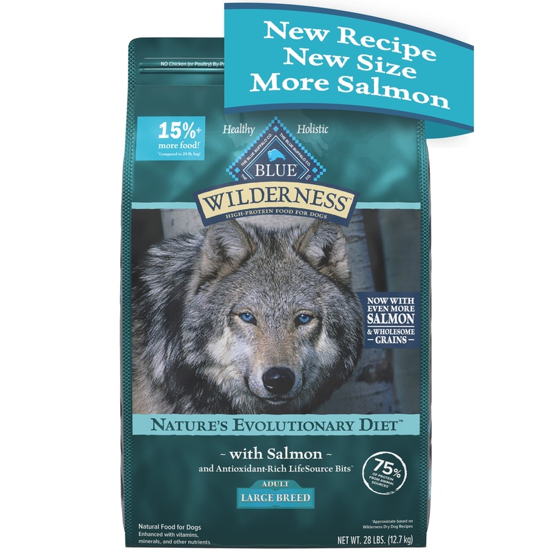 Premium, high-protein BLUE Wilderness is the protein-rich food your large breed dog was born to love. Created to satisfy ancestral cravings, it starts with high-quality deboned salmon and contains wholesome grains for truly balanced nutrition. Formulated s
