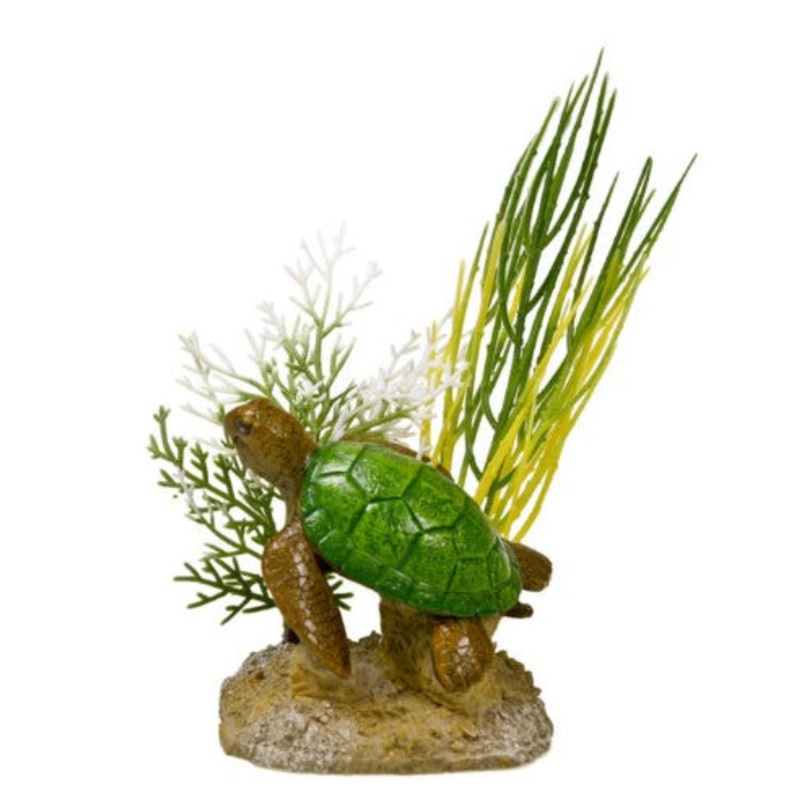 Our recreation of a peaceful green turtle swimming among beautiful beautiful plant life, will enhance any aquarium or terrariumRecreating a scene from nature is easy. Choose beautiful decor with plants or rocks for a realistic, non toxic, natural look. Saf