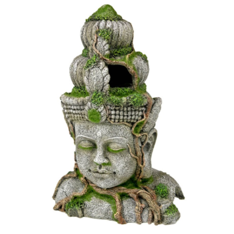 This ancient statue bust contains a chamber opening for aquarium inhabitants to obtain refuge. A subtle covering of moss denotes the lengthy time this statue has been untouched. Safe for all aquariums & terrariums.DescriptionBring ancient looking decor fro