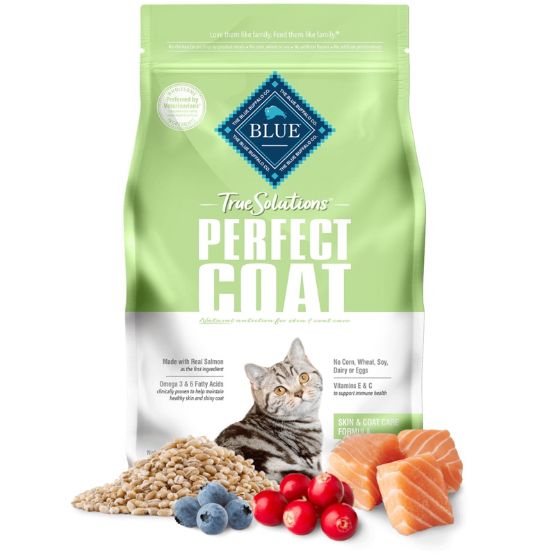 BLUE True Solutions Perfect Coat Skin & Coat Care Formula is formulated to meet the nutritional levels established by the AAFCO Cat Food Nutrient Profiles for maintenance.