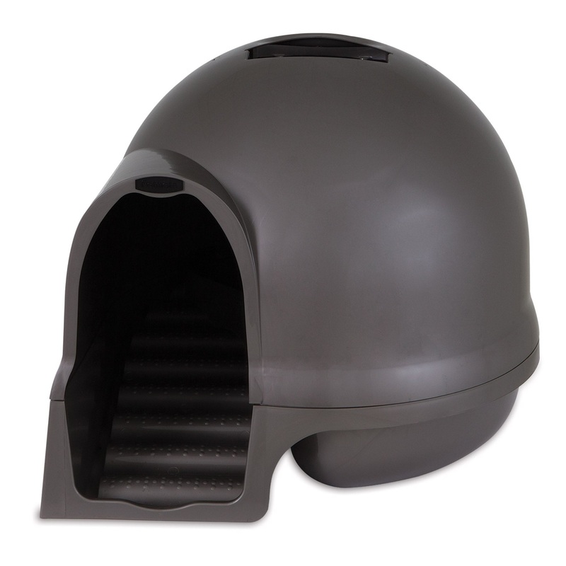 A 2-in-1 combo for both the kitty and the cat butler. With the Booda Cleanstep Litter Box, catch litter from your cat’s paws in a single step. Prevent scatter and tracking with an enclosed dome design, perfect for kitty’s privacy. Compared to the average cat box, the Booda Cleanstep Dome is 50% larger. Its ramp not only contains scatter but also minimizes tracking and overflow. A built-in handle makes cleaning and moving a breeze. The replaceable charcoal filter minimizes unwanted odors to keep your home as fresh and clean as possible.