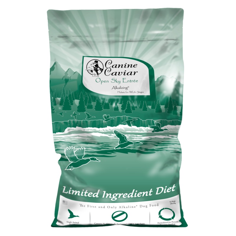 Canine Caviars Open Sky Limited Ingredient Alkaline Entre All Life Stages Dog Food is a complete and balanced formula containing an excellent source of high-quality duck. Duck provides an excellent source of iron, selenium, and niacin intended for all bree