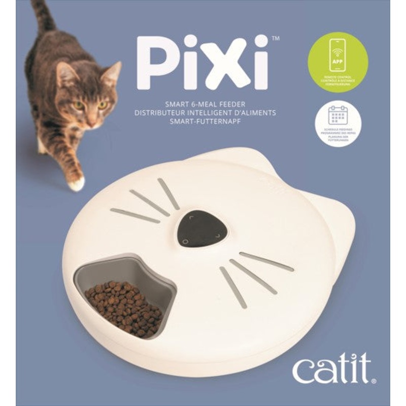 The Catit PIXI Smart 6-meal Feeder lightens your daily feeding routine by automatically serving your cat up to 6 varied meals a day, as scheduled in the free Catit PIXI mobile app. This adorable cat feeder has a cat-proof design and includes two ice packs
