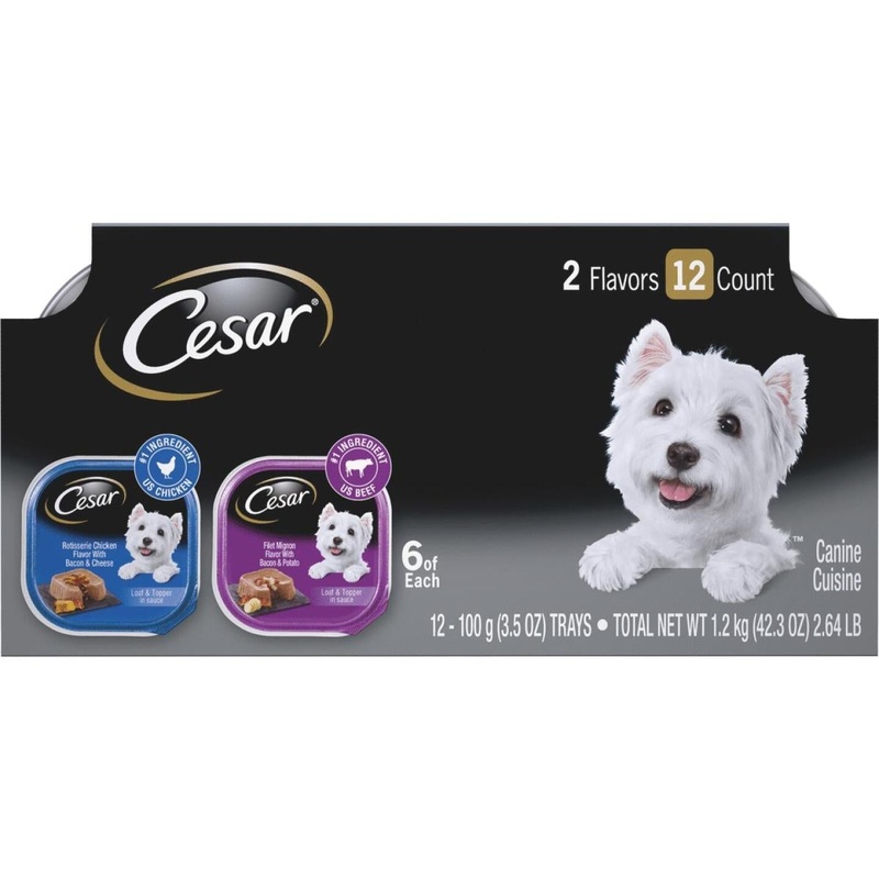 Cesar Loaf & Topper Rotisserie Chicken with Bacon & Cheese/Filet Mignon with Bacon & Potato Variety Adult Wet Dog Food (12-Pack)
