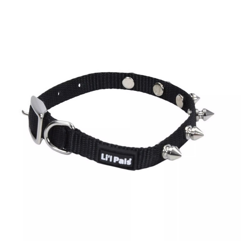 Get on the cutting edge of dog fashion with the Li'l Pals Spiked Nylon Dog Collar! This collar is sized specifically for small dogs and puppies to provide a secure, comfortable fit. It features silver mini-spikes for a tough, edgy look. The spikes are roun