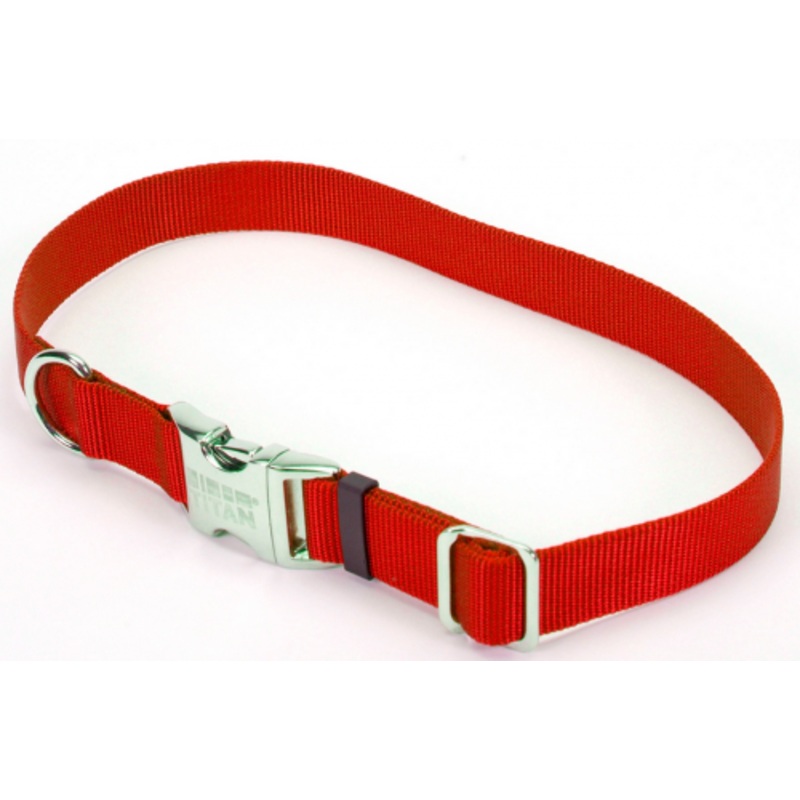 All metal construction for superior strength. Perfect for tie out. Convenient, side release buckle. Will not rust. Titan metal buckle collars feature a contoured, lightweight alluminum "snap-lock" buckle that is perfect for tie out. * 1" width nylon collar
