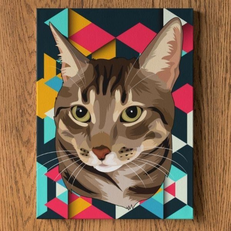 Our canvas is hand-stretched over a wooden frame with care and precision and without a doubt will bring an additional pop to your home or office. You get to decide which image of your pet will go on your handmade canvas, and after, be sure to pick a background (an abstract mosaic background is appropriately artsy)!