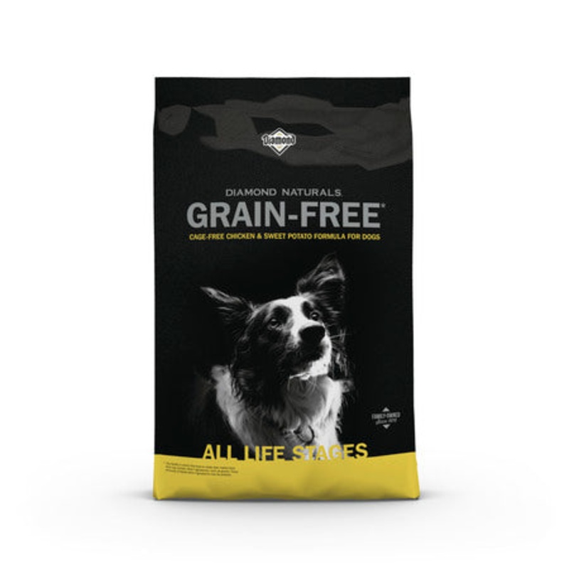 A protein-based diet free of grains most closely mimics a dog's ancestral diet. That's why the first ingredient in this Diamond Naturals Grain-Free formula is real chicken for great taste and nutrition. Sweet potatoes provide complex carbohydrates for all-