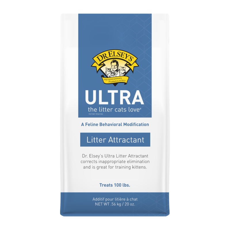 Dr. Elsey’s Ultra Litter Attractant is a feline behavior modification and training tool providing a guaranteed solution for problem cats that won’t use their litter box. This product naturally attracts cats and kittens to use the litter box. Dr. Elsey’s Ultra Litter Attractant is the only litter attractant to provide a clinically tested and consumer proven solution. Just 20 oz of this product (one pouch) will treat 100 lbs of medium size particle, non-scented clumping clay litter and last one cat over three months. To be used with Dr. Elsey’s Ultra Litter.