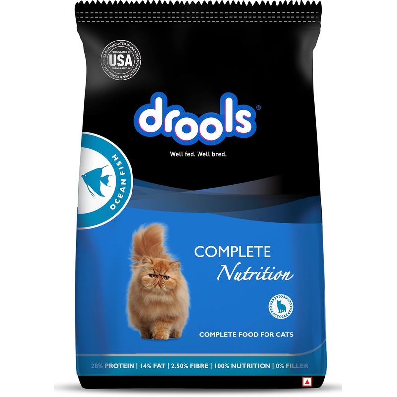 Drools Ocean Fish Adult Cat Dry Food consists of crunchy chunks packed with real mackerel and sardine, designed to support an adult cats vital functions. It provides complete nutrition for cats and is enriched with essential vitamins and minerals making yo