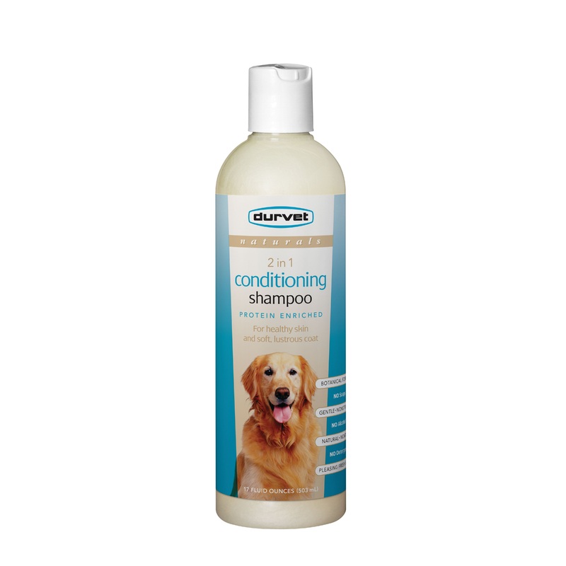 Specially formulated enriched protein shampoo and cream conditioner in one with coconut and lanol extracts, plus shea tree butter for healthy skin and soft, lustrous coat.