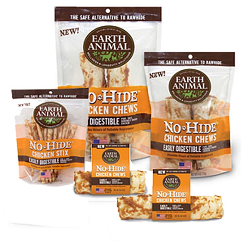 EARTH ANIMAL NO-HIDE CHICKEN CHEWSEasily Digestible Pure & Healthy American Raised Chicken.Here's something to crow about; We did it! At last, a healthier, better alternative to Rawhide. No-Hide Chews gives new meaning to dog treats. When it comes to our t