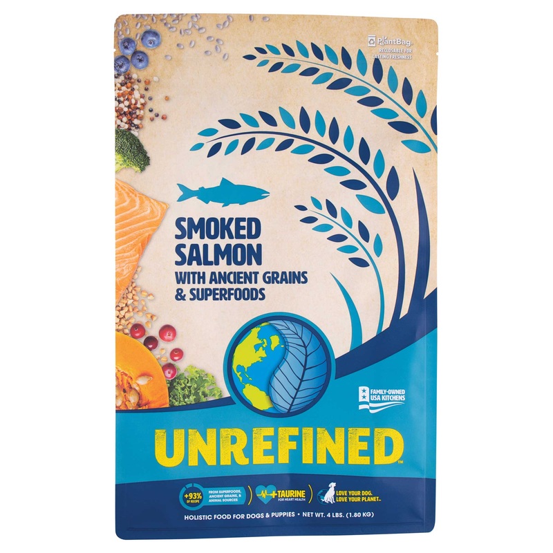 Your dog will go head over tail for Earthborn Holistics Unrefined Smoked Salmon Recipe with Ancient Grains & Superfoods Dry Dog Food. This recipe features ancient grains that are harvested from trusted sources like family farms. It also features a nutritious blend of superfoods, probiotics, and smoked salmon as the #1 ingredient for a high-quality protein source to fuel your furry friends muscles! Its just full of the good stuff and none of the stuff that might upset your buddys tummy like peas, lentils, legumes, chicken or potatoes. And since your dogs food should be as true as the bond you share, you wont find any fillers, artificial colors, flavors or preservatives in here! As an added bonus, this recipe is specially crafted for your pup in family-owned and operated kitchens located right here in the USA.