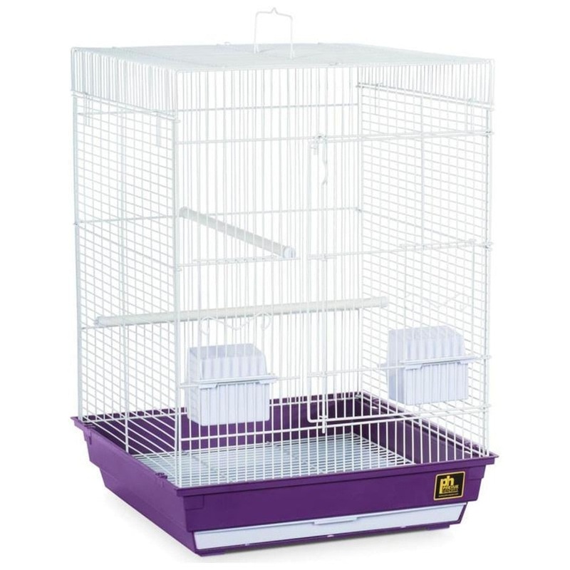 Roomy cage features a large front-opening door, top carrying handle, removable bottom grille.Also has pull-out bottom drawer for easy cleaning.Includes 2 plastic hooded cups and 2 wood perches and is designed for parakeets, cockatiels and other small to me