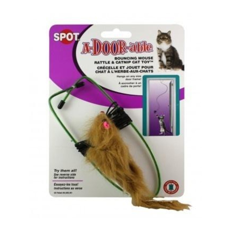 Bouncing mouse rattle and catnip toy. Assorted colors: black, white, brown.