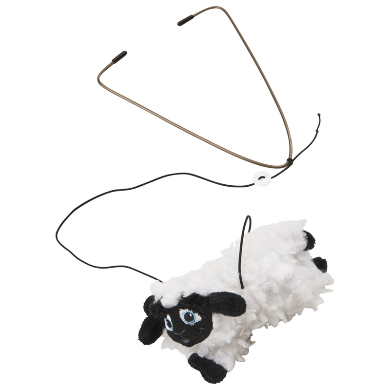A-Door-Able Baa Baa Black Sheep from your favorite nursery rhyme. Easily attaches to any door frame with a pastic coated hanger that is safe for walls and door frames. Adjustable elastic cord allows you to set the desired toy height. Features a break-away safety clip to ensure a safe play time. The fuzzy white fur is purr-fect for cats that love to get their claws into fabrics and includes a catnip/silver vine blend.
