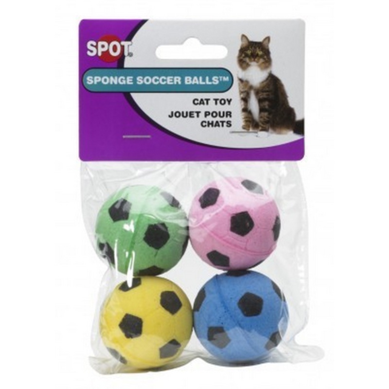 Soft mutli-colored sponge soccer balls. Comes in 4-pack with assorted colors.