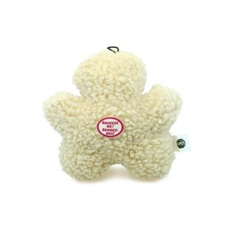 Heavy textured, natural colored fleece 8 inch chewman design with squeaker.