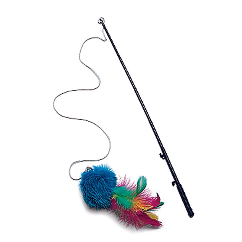 Mini teaser plastic wand with a long bungee cord for interactive fun. There are different characters, feathers and strings.