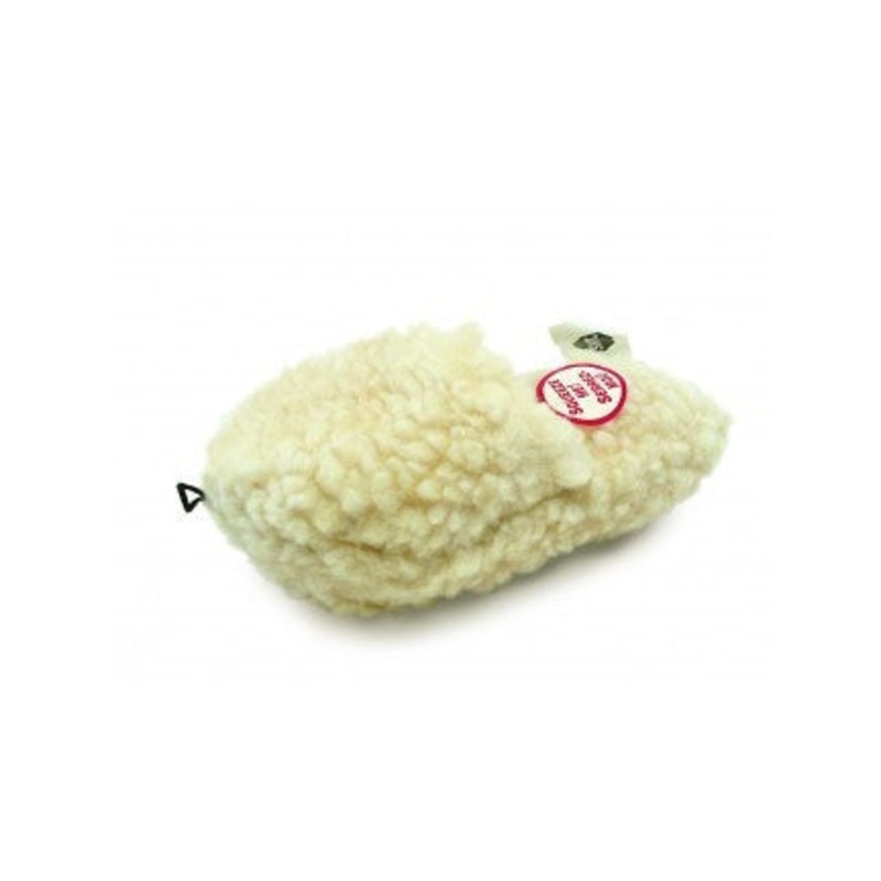 Heavy textured, natural colored fleece 8 inch Fleece Slipper design with squeaker.