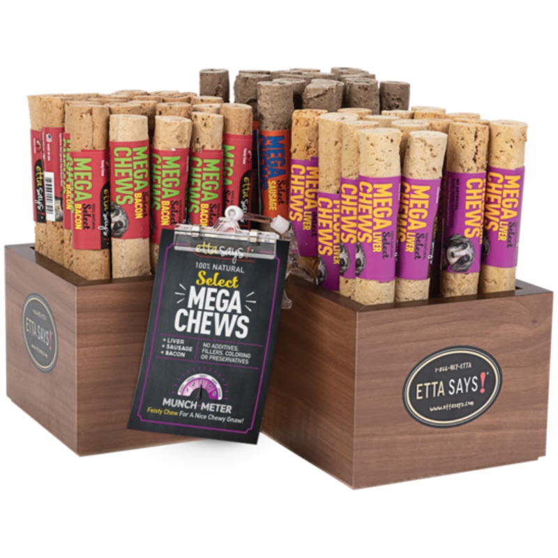 100% Natural Ingredients Feistyhardness on the Munch-Meter ScaleMade from beef tendons blended with a unique protein. Available in threeProteins:Bacon, Sausage & Liver Banded to show natural textureLIVER MEGA CHEWSIngredients:Beef Ligament and Beef LiverGU