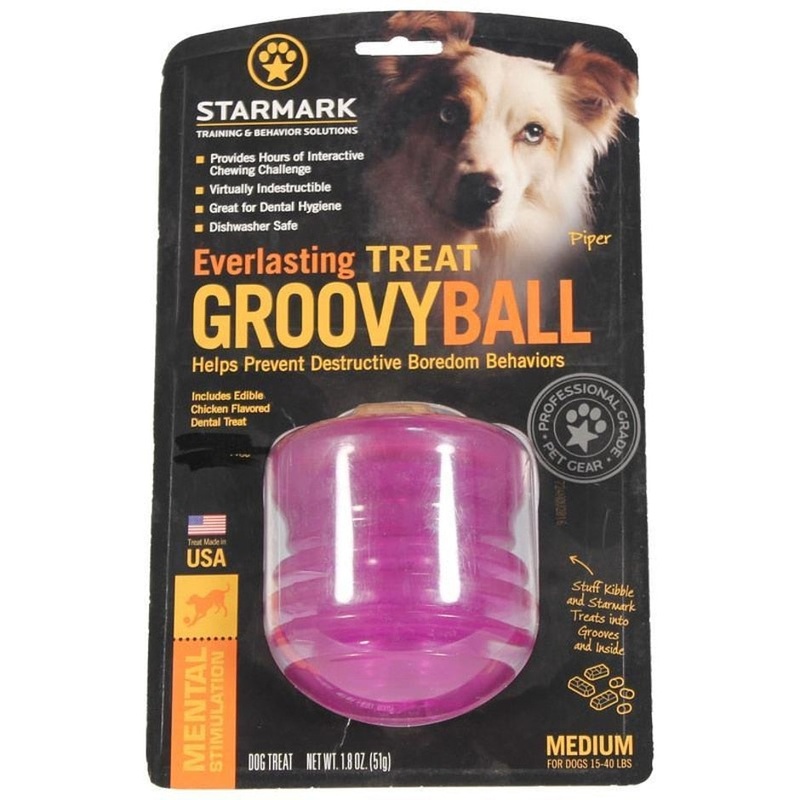 Holds a variety of treats and kibbleMade with virtually indestructible materialProvides hours of challenging play