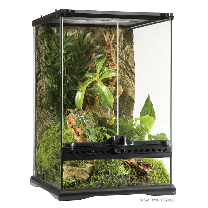 The Exo Terra Glass Terrarium is the ideal reptile or amphibian housing designed by European herpetologists. The front opening doors allow easy access for maintenance and feeding. A specially designed lock will prevent escape and the doors can be opened se