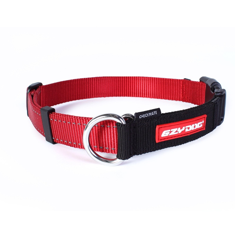 The EzyDog Checkmate Collar features the benefits of a martingale collar with the on/off simplicity of a traditional collar. It offers limited-slip functionality for training or for dogs that back out of a collar. Features reflective stitching, durable nyl