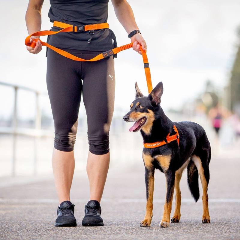 The EzyDog Road Runner Leash is a hands-free, around the waist or over the shoulder shock absorbing reflective leash. It is perfect for running, cycling, pushing a stroller or whenever you need an extra hand while walking your dog. Features a traffic handl