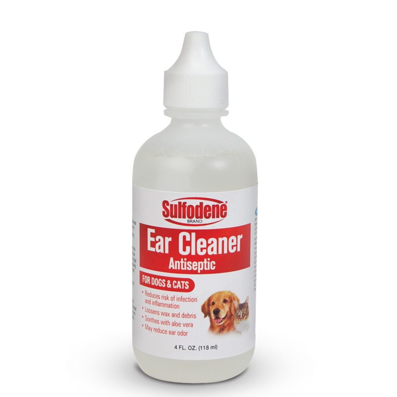 Apply a liberal amount of SulfodeneBrand Ear Cleaner into the ear canal of the dog or cat. Gently massage the base of the ear to loosen wax and debris, then let the pet shake the liquid out of the ear, if desired. A cotton swab may be used on the outer ear to remove extra dirt and debris. Do not insert cotton swab or any other object deep into the pets ear canal.