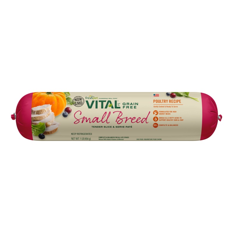 Picky eater no morethis enticing pat combines all-natural chicken and turkey with cranberries, blueberries, spinach, and pumpkin. Specially designed to satisfy small mouths, this recipe is sure to be a mealtime favorite.Specially formulated for small dogsG