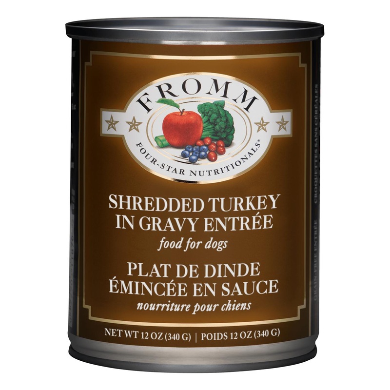 Fromm Four-Star Nutritionals Shredded Turkey in Gravy Entre Food for Dogs is formulated to meet the nutritional levels established by the AAFCO Dog Food Nutrient Profiles for All Life Stages, including growth of large size dogs (70 lbs. or more as an adult).