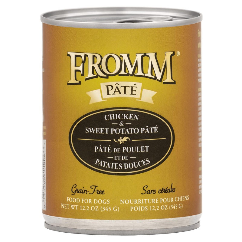 Fromm Chicken & Sweet Potato Pt Food for Dogs is formulated to meet the nutritional levels established by the AAFCO Dog Food Nutrient Profiles for All Life Stages, including growth of large size dogs (70 lbs. or more as an adult).