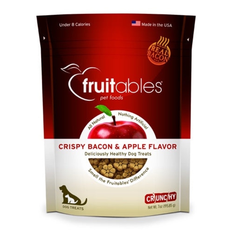 Crispy Bacon & AppleEverythings better with bacon! This recipe combines the flavors of real crispy bacon with sweet apple in a treat thatll drive your dog into a drooling frenzy. Smell the Fruitables difference!Made with Superfoods!CalorieSmart formulated