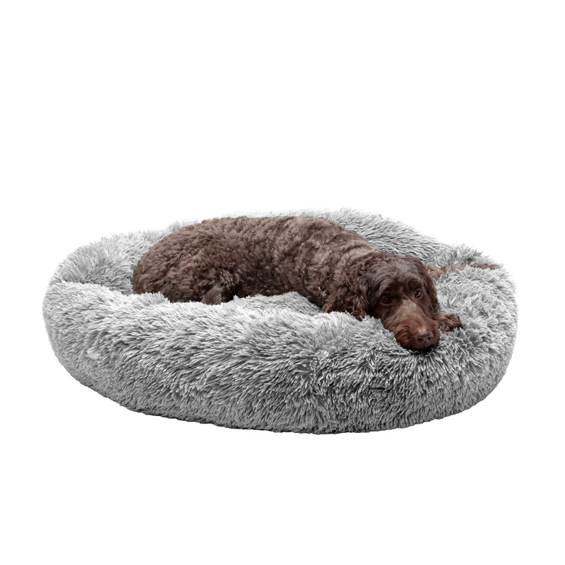 FurHaven Calming Cuddler Donut Beds are designed to embrace pets in warmth and comfort – creating a calm space that soothes anxiety and promotes a deeper and more restorative sleep for your dog or cat. Deep bolstered edges create cozy “pockets” of extra warmth for a self-warming effect your pet will love. The “pockets” created by the bolstered edges create the perfect spot for “nesters” to cuddle into, with the pillow-y edges still comfortable enough for sprawlers and “belly up” sleepers to snooze away. These hidden spaces are also perfect for burrowing or hiding favorite toys and treats from other “pack members”! Luxuriously long vegan fur is soft on snouts and paws and is so plush you will be tempted to steal this donut bed for yourself.