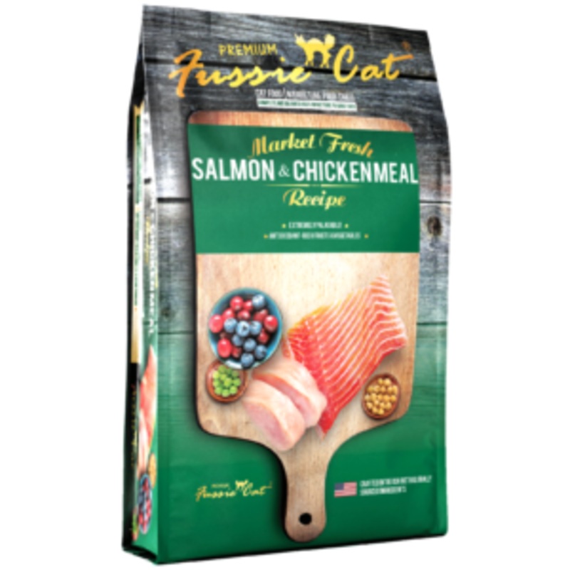 Fussie Cat Market Fresh Salmon & Chicken Meal Recipe for cats is formulated to meet the nutritional levels established by the Association of American Feed Control Officials (AAFCO) Cat Food Nutrient Profiles for all life stages.