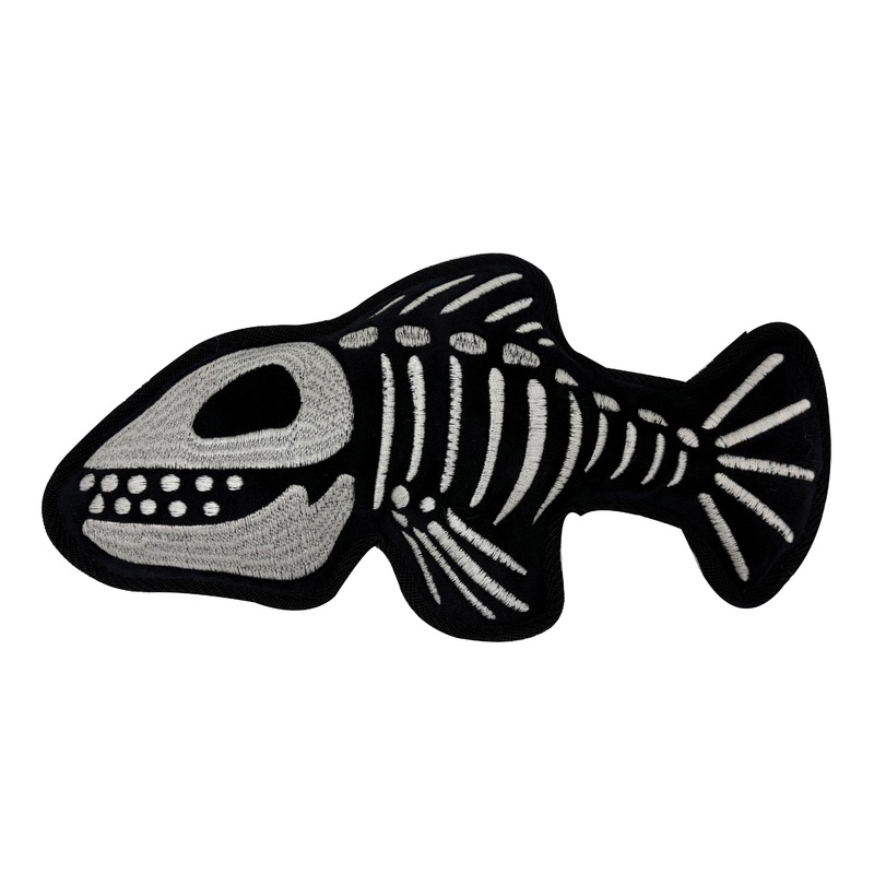 Spooky fishbone shape with embroidered skeleton design