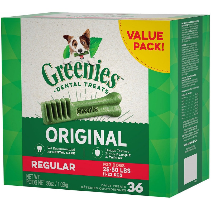 • Contains one (1) 18 oz. 18-count pack of GREENIES Original Regular Size Natural Dental Dog Treats
