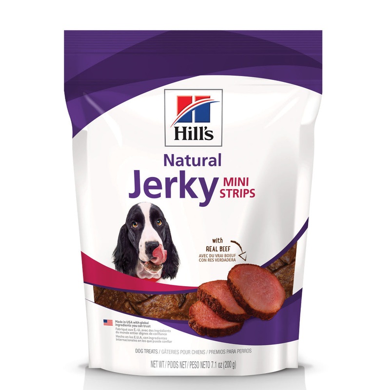Hill’s Jerky Mini-Strips with Real Beef are delicious, natural treats made from only the best ingredients. Bite sized and made with real beef for aflavor that gets tails wagging. Noartificial flavors or preservatives.