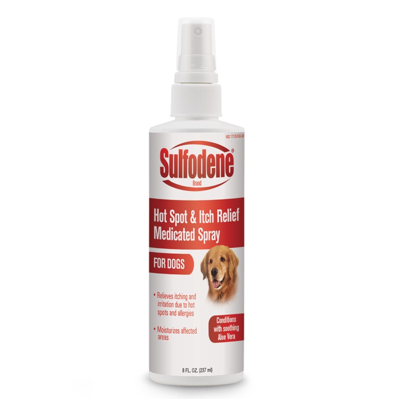 Spray away your dogs itchy skin worries with the Sulfodene Hot Spot & Itch Relief Medicated Spray. Provides relief from itching caused by hot spots and allergies. The spray application allows you to spot treat the affected area with ease. The spray has a moisturizing formula to help give relief to dogs with hot spots, scrapes, and abrasions.