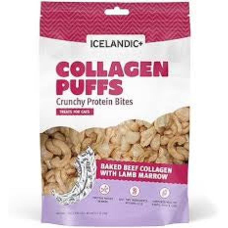 Icelandic Cat Collagen Puffs with Marrow .5ozLooking for the ultimate combination of a healthy cat treat that packs a flavor punch? Collagen puffs are the perfect mini protein treat your furry best friend is sure to love. With just two ingredients, USA bee