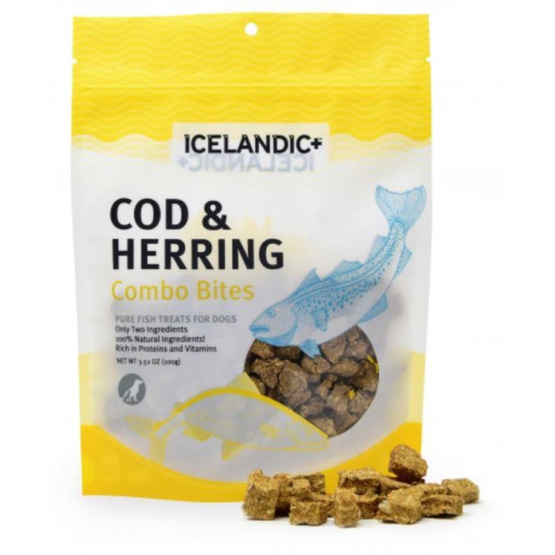 Your dog will love the irresistible taste and satisfying crunch of our nutritious and natural Cod & Herring Combo Bites Fish dog treats, made from just two ingredientsCod and Herring! They are caught fresh daily in the cold, pure waters of Iceland, and air-dried within FDA, USDA, EU, and MAST standards. Our 100% edible and digestible Cod & Herring Fish Treats promote healthy skin and coat with Omega-3 fatty acids. They also reduce plaque and tartar build-up, making them good for your dogs teeth. Plus, since these treats feature just two protein sources, theyre a smart choice for dogs with food sensitivities.