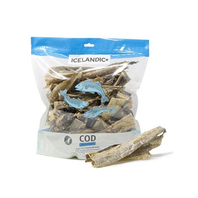 Description100% Pure Icelandic+ Cod Skin PiecesOur 100% natural and edible Icelandic Cod Skin Fish Pieces are single ingredient and contain no additives, preservatives or supplements. They come only from the pure icy waters of Iceland and are line-caught d