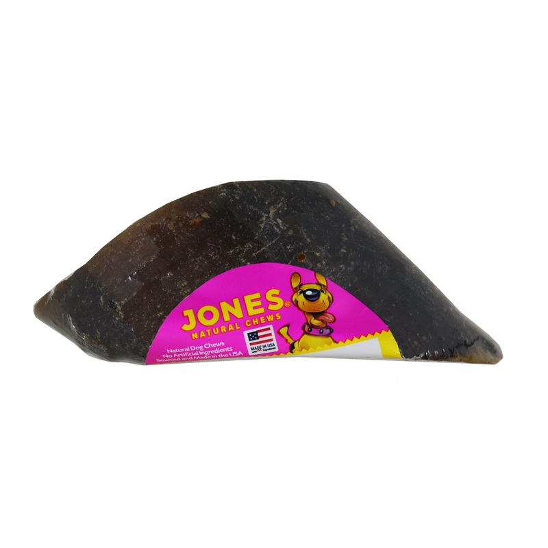 Jones’ Beef hooves are a great source of protein and one of the most popular dog chews. So we stuffed the hooves full of real chicken and rice-flavored goodies. Stuffed hooves will keep any size dog busy for hours. All Jones products are raised, sourced and handcrafted in the USA. Ingredients: beef hoof, chicken, cane sugar, rice flour, cane molasses, water, vegetable glycerin, citric acid (preservative), white vinegar, vegetable oil, mixed tocopherols (preservative), lecithin, rosemary extract. Guaranteed Analysis: Crude Protein Min. 17%, Crude Fat Min. 3.5%, Crude Fiber Max. 1%, Moisture Max. 22%