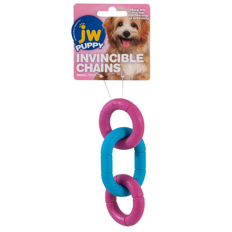 JW Invincible Chains provides your dog with the rubber texture he loves to chew on. Solid; no glue construction stands up to the abuse. A terrific tug as well - easy to hold on to while your dog tugs with all his or her might. Enjoy a game of toss and tug