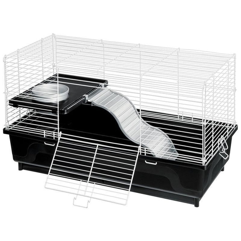 The Kaytee My First Home for Pet Rats provides great living space for rowdy pet rats to roam! The deep plastic base prevents bedding from scattering while the wire top makes for easy viewing and superb ventilation. Narrow 1/2" spaced wire bars prevent smal